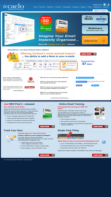 nelson email organizer is a microsoft outlook add-on. from its lightning fast searching, email arrival notification, attachment manager to the logic way of sorting your email, neo is ready to simplify your life!