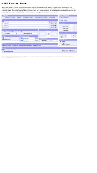 a simple to use online function plotter with a lot of options for calculating and drawing graphs or charts of mathematical functions and their score tables.