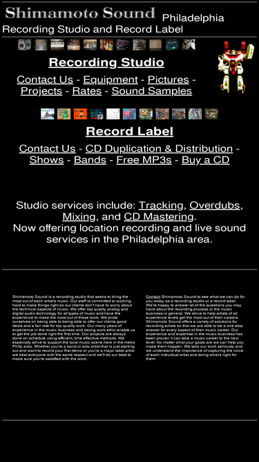 shimamoto sound is a philadelphia recording studios offering the best in analog and digital audio technology. studio services include tracking, overdubs, mixing, and mastering.