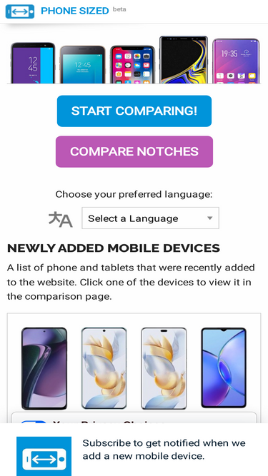 A website for comparing and viewing the relative visual size difference between different mobile phones and tablets devices.