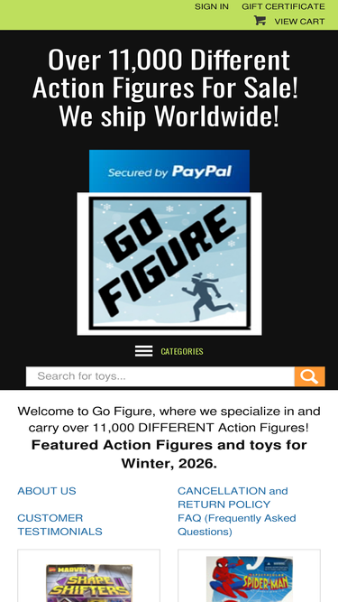 shop for over 11,000 different action figures from marvel, dc, star wars, mcfarlane toys & wrestling. we are paypal payments pro verified and ship worldwide.
