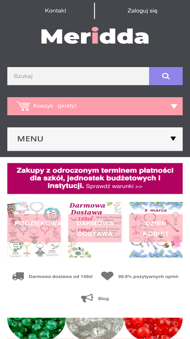 98%Sklep z ogromnym wyborem elementów do tworzenia biżuterii: kamienie półszlachetne, elementy ze stali szlachetnej, koraliki, elementy ceramiczne, duży wybór rzemieni i sznurków oraz wiele innych akcesoriów do tworzenia biżuterii.