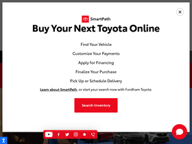 Search Toyota Inventory at Fordham Toyota for 4Runner, Avalon, Camry, Corolla, FJ Cruiser, Highlander, Land Cruiser, Matrix, Prius, Prius c, Prius Plug-In, Prius v, RAV4, Sequoia, Sienna, Tacoma, Tundra, Venza, Yaris