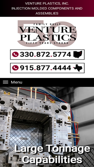 Established in 1969, Venture Plastics, Inc. (VPI) is an IATF-16949 certified custom thermoplastic injection molding company with 2 facilities; one facility located in Newton Falls, Ohio and the other in El Paso, TX.