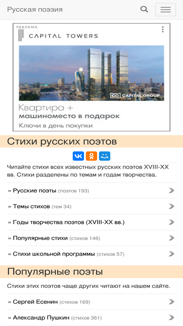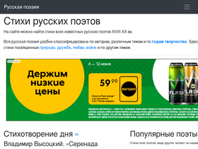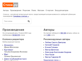 82%Собрание стихов русских поэтов. На страницах этого сайта вы найдете все произведения самых известных русских поэтов. Стихи удобно разделены по каталогам и по различным темам.