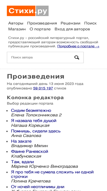 портал предоставляет авторам возможность свободной публикации и обсуждения произведений современной поэзии.