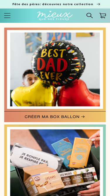 78%+ de 700 cadeaux originaux et utiles pour toutes les occasions de faire MieuxQueDesFleurs. Organisez une livraison de box ballon pour un anniversaire, personnalisez une box cadeau pour la fête des mères, faites livrer une surprise pour une fête ou préparez une idée pour la Saint-Valentin. Émotions garanties.
