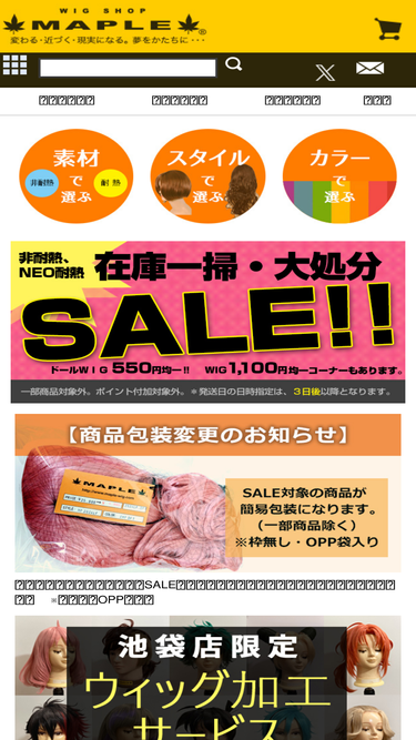 コスプレウィッグ、ファッションウィッグの通販専門店です。コスプレイヤー向けの【変幻自在ウィッグ】は手グシのみでも自由自在にスタイリングが可能です。初心者の方にも使い易い完成度の高さが特徴です。素材は地毛に近い風合い・手触りを重視した耐熱性でコテ等も使えます。フルウィッグに限らず、部分ウィッグや薄毛対策人毛ウィッグまでフルアイテム揃います。グラデーションカラーや2トーン等特殊なカラーも豊富に品揃え。平日は15時までは即日発送可能で、3,500円以上の商品購入で全国送料無料となります。