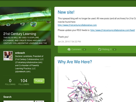 this blog will be used to explore, exchange, and create ideas around 21st century collaborative learning and the environments and tools that make this learning possible--with the big goal of helping teachers and those who prepare teachers redesign teaching and learning for success in the 21st century.
