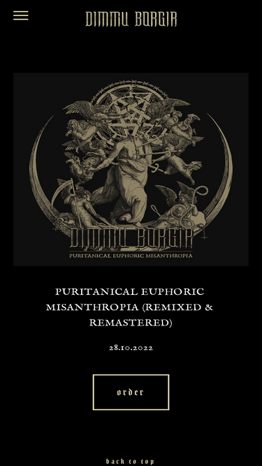 89%The Official Dimmu Borgir website. DIMMU BORGIR will release a remixed and remastered album Puritanical Euphoric Misanthropia, out October 28th 2022 via Nuclear Blast Records.