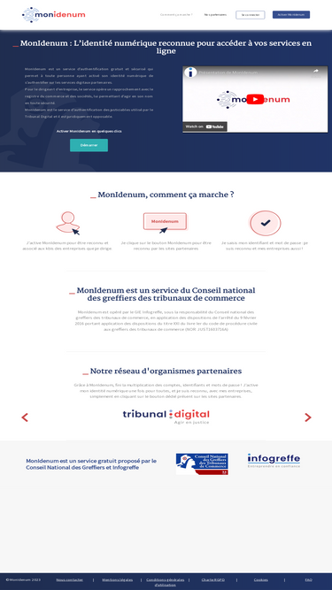 l’identité numérique monidenum est un service gratuit proposé par le conseil national des greffiers des tribunaux de commerce et infogreffe qui permet de vous connecter rapidement et de manière sécurisée sur les sites partenaires d’infogreffe.
