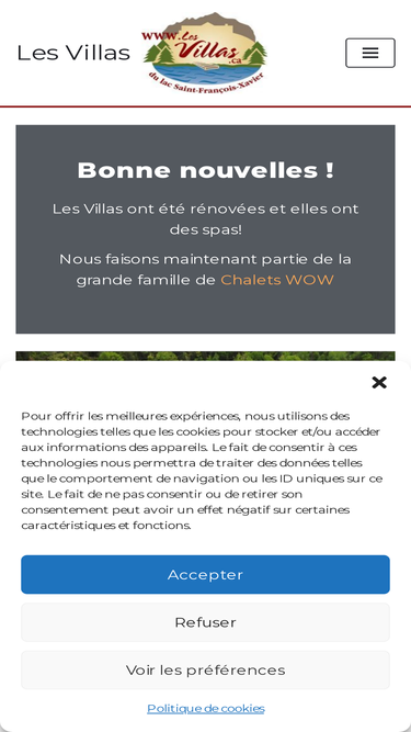 Les Villas du lac St-François-Xavier, trois grands chalets à louer à Wentworth-Nord à 55 minutes de Montréal, en bordure du lac offrant jusqu'à 23 chambres dans trois chalets.