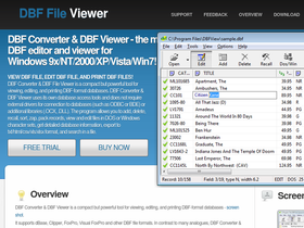 100%dbf file viewer - dbf file viewer makes working with databases simple and hassle free. dbf file viewer makes working with databases simple and hassle free. the program allows you to add, delete, recall, sort, zap, pack records, view and edit files in dos or windows.