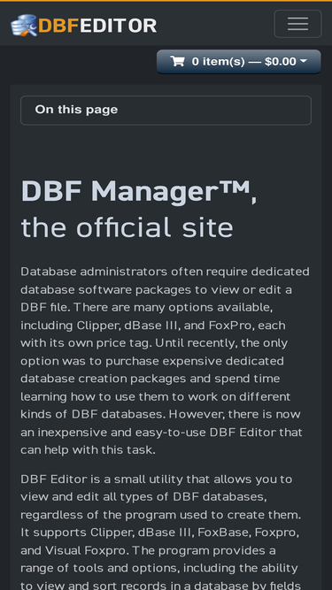 dbf viewer and dbf editor for windows - view, edit and print your dbf files! dbf view supports dbase, clipper, foxpro, visual foxpro and other dbf formats. import from excel 2007 to dbf files!