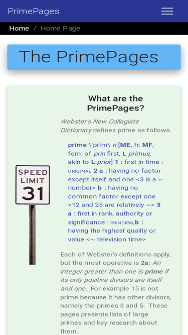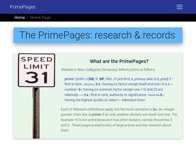 access to hundreds of pages of award-winning information on prime numbers--with links to thousands of pages elsewhere. we host the searchable database of the 5000 largest known primes (updated hourly). we also have a glossary, top 10 records lists, prime-music, programs, free downloads, and much more!