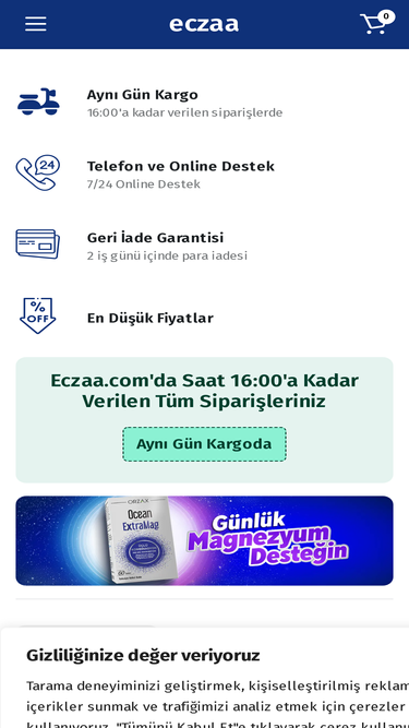 Dermokozmetik, vitamin ve kişisel bakım ürünlerini aynı gün kargo garantisi ve 365 gün indirimli fiyat uygun fiyat garantisi ile sitemizde