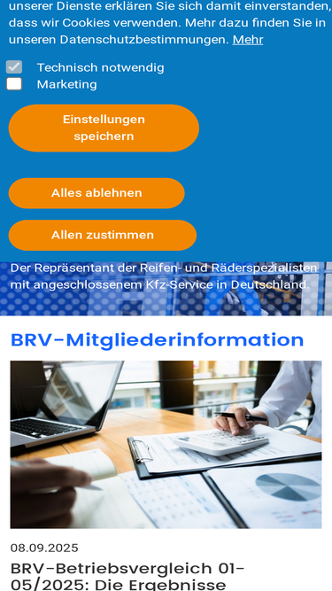 der bundesverband reifenhandel und vulkaniseur-handwerk e.v. (brv) ist der bundesweit tätige fachverband des deutschen reifengewerbes. mit seinen über 2010 mitgliedsunternehmen und ihren insgesamt 3.500 verkaufsstellen repräsentiert er rund 80 prozent der branche in deutschland.