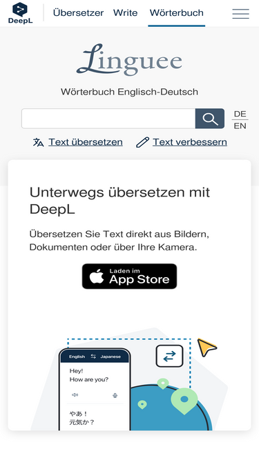 englisch-wörterbuch und suche in weltweit einer millarde übersetzungen. sprachen: englisch, französisch, spanisch, portugiesisch, deutsch