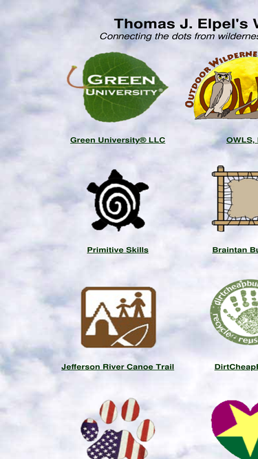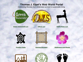 portal to access all websites managed by thomas j. elpel, including green university llc, owls, llc, hops press, llc, and jefferson river canoe trail, braintan buckskin, wildflowers and weeds, dirtcheapbuilder, primitive skills.