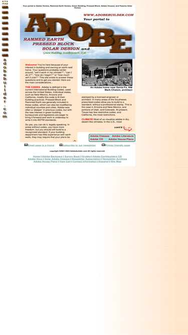 87%interámerica's adobe builder-your portal to adobe homes, adobe houses, rammed earth homes, pressed block houses, solar design and green building. offering back-pacs of adobe builder magazine, earthbuilder's encyclopedia cd-rom, southwest solaradobe classes, and affordable house plans