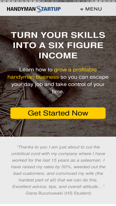 Learn how to start and grow a handyman business. Bring the tools and motivation, and I'll help you turn your skills into a six-figure income.