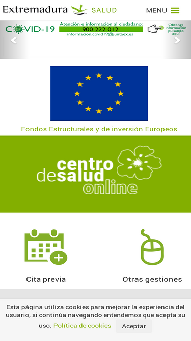 96%extremadura salud el nuevo portal del servicio extremeño de salud (ses). desde aquí podrá pedir cita para su médico. consulte información sobre los diferentes colectivos vih sida, cáncer, donación y transplantes, diabetes, educación para la salud. acceda para solicitar cita previa médico del centro de salud online. inicio