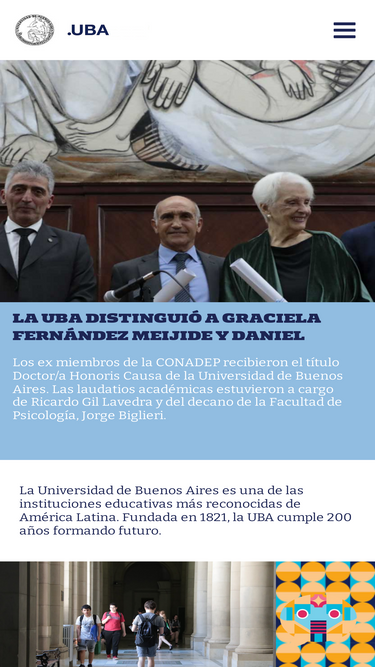 Sitio de la UBA, Universidad de Buenos Aires. Invesetigación, Internacionales UBA, Ingreso UBA, Carreras UBA, Posgrados UBA, Extensión UBA, Hospitales UBA, Facultades UBA, Colegios UBA, CBC, UBAXXI, Radiouba, UbawebTV, Rojas UBA, Cinecosmos