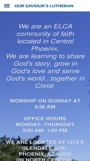 Our Saviour's is an ELCA congregation in the central corridor of Phoenix that welcomes all people to grow in their faith and serve others in Jesus' name.