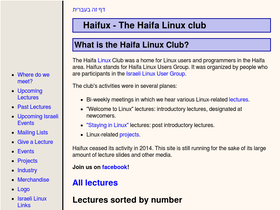 83%haifux a.k.a haifa linux club holds weekly lectures on free software and open source topics, revolving around linux. haifux is a lug - a linux user group.