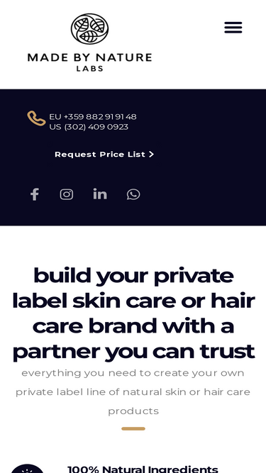 Create your private label natural & organic skincare, hair care, and personal care with Made By Nature Labs. High-quality, low MOQs—Start your brand today!