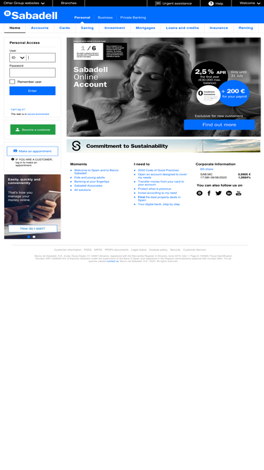 Servicios y productos financieros para particulares: Cuentas, Tarjetas, Hipotecas, Préstamos, Inversión, Planes de pensiones y Seguros de Banco Sabadell.