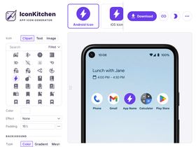 generate icons and images for mobile apps, android and ios. no need to upload or download. works on your browser