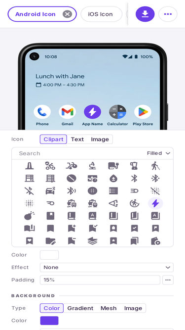 Create unique, beautiful and professional app icons with our AI icon generator. Convert text to ready to use logo easily just in seconds.