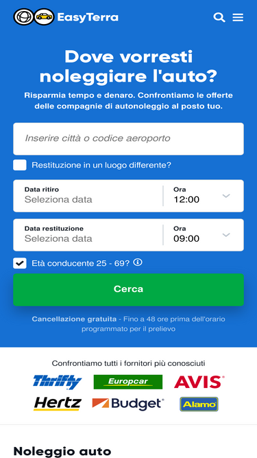 98%easyterra autonoleggio confronta i prezzi delle auto a noleggio in tutto il mondo, tra cui spagna, italia, francia e portogallo. garantiamo le tariffe più economiche!