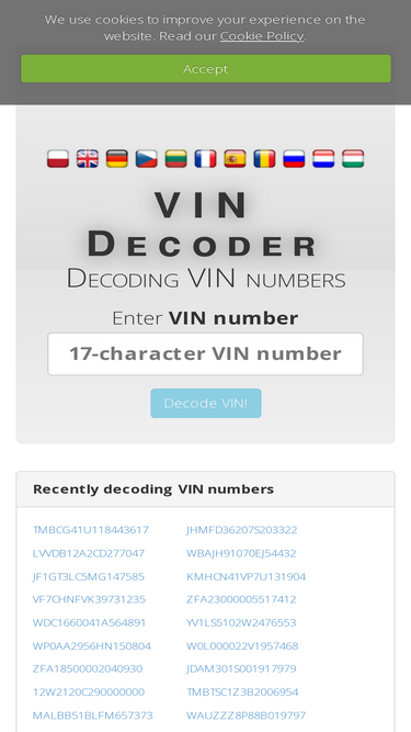Free VIN decoder for all cars
