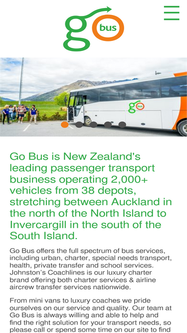 go bus is new zealand's leading passenger transport business operating 38 depots from auckland to invercargill.