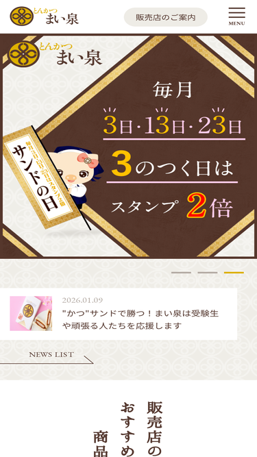 昭和40年、東京で創業した「とんかつまい泉」。熟練の職人が丁寧にパン粉付けした「箸で切れるやわらかなとんかつ」をはじめ、ヒレかつサンドやお弁当を取り揃えています。