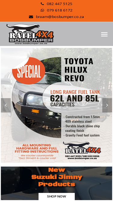 Go-4LO Outdoor Equipment is a supplier of all your 4x4 accessories and stock most of the top-tier brands in South Africa. We stock a wide range of Overlanding and vehicle accessories such as Replacement Bumpers, Suspensions, Spacer Kits, Snorkels, Fridges, and many more. Visit our online store today.