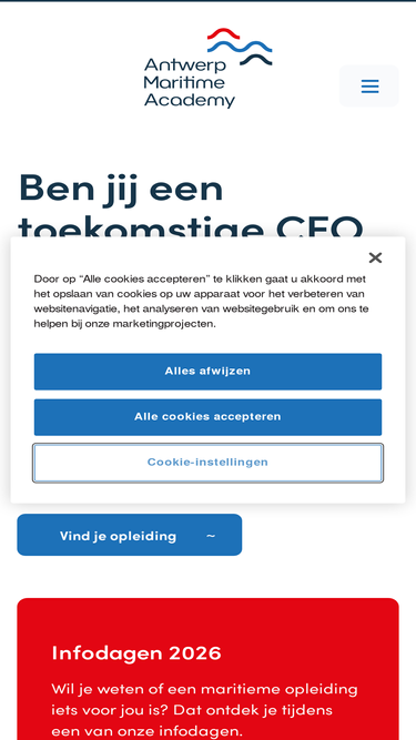 antwerp maritime academy is een internationale topschool in het hart van de europese maritieme hoofdstad: antwerpen. we zijn al meer dan tweehonderd jaar dé belgische referentie voor opleidingen richting de maritieme sector. en zijn vandaag in een steeds verder geglobaliseerde wereld relevanter dan ooit. bij ons vind je moderne en toekomstgerichte opleidingen die je voorbereiden op een carrière in de stuurhut van onze maatschappij – aan boord van een schip of aan de wal.