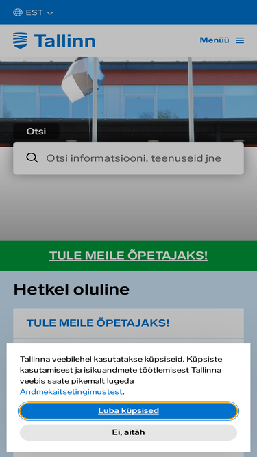 tere tulemast tallinna linna veebilehele! meie lehelt leiate tallinna tähtsamad uudised, infot pakutavate teenuste ja linna juhtimise kohta ning viiteid olulistele teemadele.