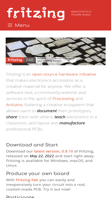 fritzing is an electronics design and prototyping platform for makers, hobbyists, and educators. easily create and document your electronic projects.