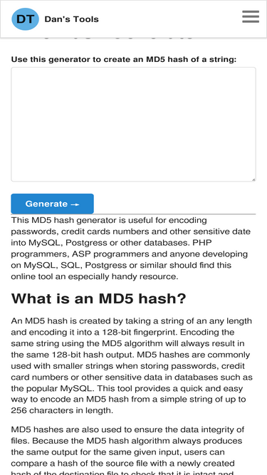 86%A tool for creating an MD5 hash from a string. Use this fast, free tool to create an MD5 hash from a string.