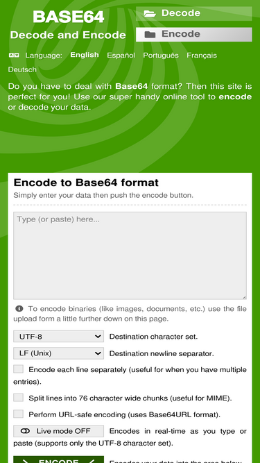 Decode from Base64 format or encode into it with various advanced options. Our site has an easy to use online tool to convert your data.