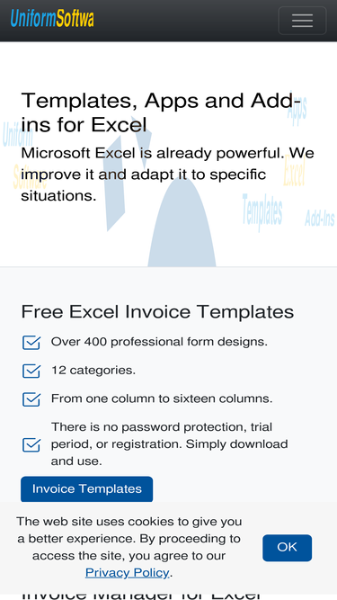 our products are excel invoice templates and add-in apps, including invoice manager, pdf maker, date picker, mind map maker, flowchart maker, gantt chart maker, formula manager, password remover.