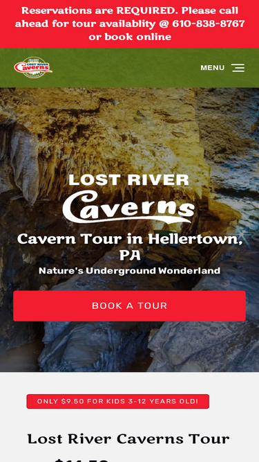 Reservations are REQUIRED! Experience Nature’s Underground Wonderland in Hellertown, PA. The guided walking tour typically lasts 30-45 minutes and people of all ages are welcome!