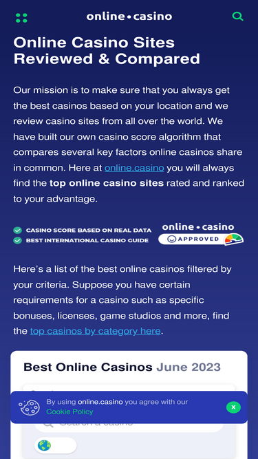 Read our cookie policy for our website online.casino. Learn what cookies are, how and why we use them and how you can delete or block Cookies.