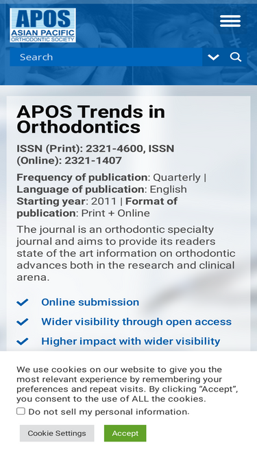 The APOS Trends in Orthodontics (APOS) is an open-access peer-reviewed journal committed to publishing high-quality articles.