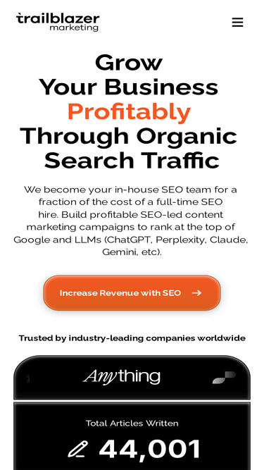 We become your in-house SEO team for a fraction of the cost of a full-time SEO hire. Build profitable SEO-led content marketing campaigns to rank at the top of Google and AI (ChatGPT, Perplexity, Claude, Gemini).