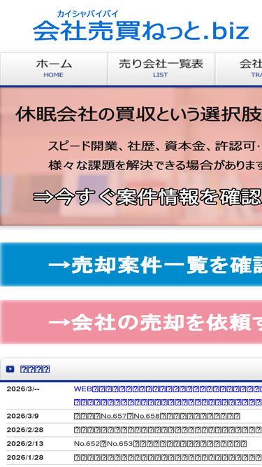 会社売買・m&aの仲介は会社売買ねっと.biz。成約案件数no.1、専門コンサルタントが完全成功報酬でサポート!休眠会社から小規模m&aまで、宅建や建設業といった各種許認可付き法人、特殊法人、まで在庫多数!
