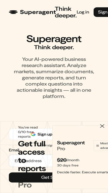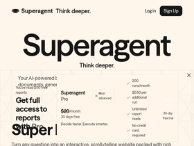 78%Superagent provides free AI business research tools and an AI research assistant to analyze, summarize, and generate insights from web and text sources.